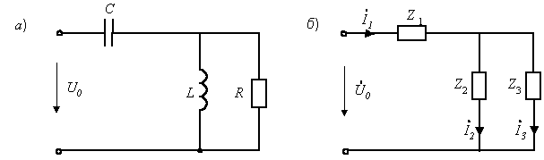 Задача 7.4. Рассчитать комплексным методом распределение токов и напряжений в цепи (рис. П7.1,а), на входе которой действует источник синусоидального напряжения с действующим значением U0 = 10 В и круговой частотой w. Cопротивления элементов на этой частоте равны: R = ωL = 1/ωC = 10 Ом.