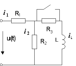 Задача 13.2. Рассчитать переходный процесс в индуктивной цепи (рис. П13.2), находящейся под действием синусоидального напряжения с амплитудой Um00 = 100 В и угловой частотой w. Параметры R1 = R2 = R3 = 10 Ом; wL = 5 Ом.