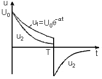 Задача 17.1. На входе цепи, изображенной на рис. П17.1, a, действует экспоненциальный импульс напряжения u1(t) длительностью T (рис.П17.1, б).