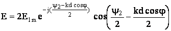 где - пространственная фаза поля второго вибратора за счет разности хода лучей