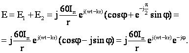 Здесь r1 ≈ r2 ≈ r, dр – расстояние от вибратора до рефлектора, Ф – сдвиг фаз между полями. В случае волновых вибраторов