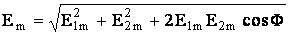 В горизонтальной плоскости в формировании ДН участвуют панели только одного этажа. Причем в любом направлении поле создается только двумя панелями, т.к. другие две панели затенены рефлекторами. Поля каждой из двух панелей при синфазном питании отличаются по фазе только из-за разности хода лучей до точки наблюдения. По правилу сложения векторов амплитуда результирующего поля в случае полуволновых вибраторов равняется