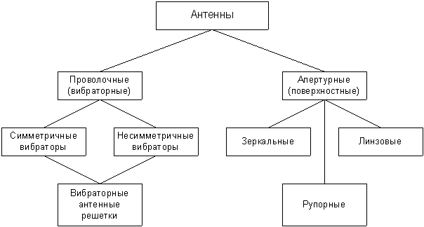 Изучение антенн удобно осуществлять, систематизировав их по определенным группам. В качестве критерия используют принцип действия антенн, распределение по диапазонам волн, область применения. На рис. В1 приведена схема классификации антенн по принципу действия.