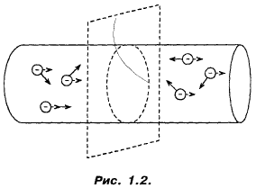 “А”: Да только то, что кружочки — это электроны. А стрелки представляют из себя ВЕКТОРЫ, иллюстрирующие тот факт, что средняя скорость электронов примерно одинакова при данной температуре. А вот направление движения — неупорядоченное, хаотическое. А это значит, что за некоторую единицу времени, например, за ОДНУ СЕКУНДУ количество электронов, которые пересекли плоскость справа—налево и слева—направо — ОДИНАКОВО! Иными словами, Незнайкин?...