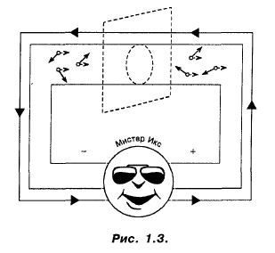 “Н”: Где-то я уже что-то подобное видел. Слева, очевидно, изображена цепь с электрической лампочкой. Верно? А справа я не знаю. И потом, что это за разрыв в цепи?