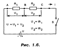“А”: Светить, он конечно, не светит! А вот относительно того, что он не греет, согласиться с тобой никак нельзя! А ну давай-ка этот рисуночек, то есть я хотел сказать — эту принципиальную электрическую схему нарисуем отдельно (рис. 1.5)