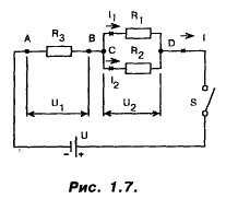 “А”: Молодцом! А теперь даю еще одну вводную. Объясни, как работает принципиальная электрическая схема, изображенная теперь (рис. 1.7)?