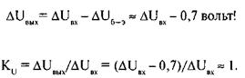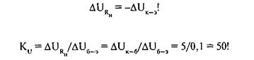 А теперь посмотрим, что можно сказать о КU такой схемы. В самом деле, коллекторный ток, проходя по резистору rh создает падение напряжения, равное URн . Но напряжение U6_3 будет во всех случаях иметь величину около 0,7 вольта. Тогда: