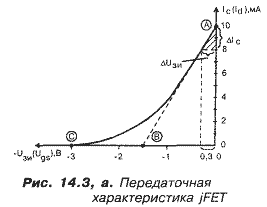 “С”: Все проще гораздо, в чем мы сейчас и убедимся! Рассмотрим ПЕРЕДАТОЧНУЮ (она же УПРАВЛЯЮЩАЯ) характеристикуJFЕТ (рис. 14.3, а).