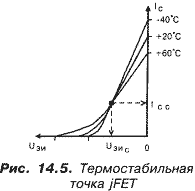 “С”: Верно! Но самое удивительное не то, что имеется зависимость передаточной характеристики jFET от температуры, а то, что существует точка, вольтамперные координаты которой АБСОЛЮТНО не зависят от температуры окружающей среды!