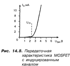 “С”: Что мы и сделаем (см. рис. 14.8)! Вот здесь представлена УПРАВЛЯЮЩАЯ или ПЕРЕДАТОЧНАЯ характеристика некоего MOSFET с индуцированным каналом, пороговое напряжение которого (Un) равно, примерно 2 вольта. Дальше, я полагаю, можно не продолжать?