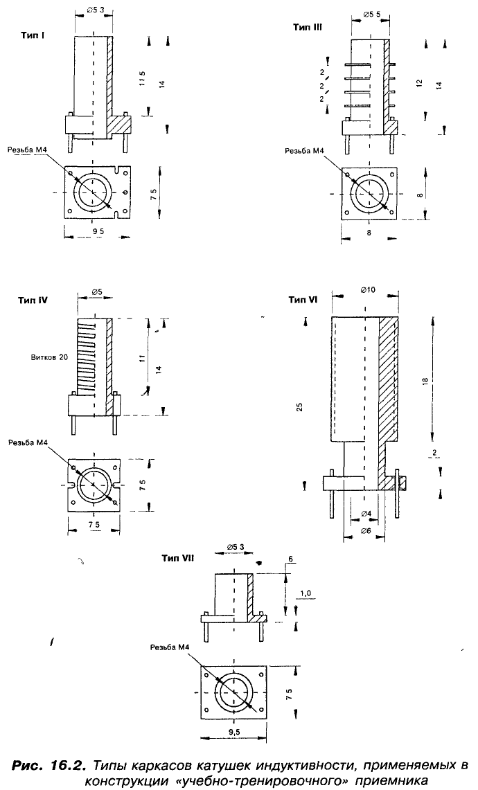Что касается конструкции контурной катушки ГПД, то здесь отступать от современного стандарта тоже не следует. Вот она, на рис. 16.2 (тип IV).