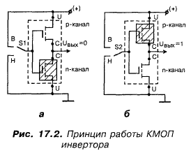 “Н”: А если на рис 17.2, б S2 перевести в противоположное положение, то р-канальный и n-канальный ранзисторы, я полагаю, просто поменяются ролями!