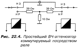 встречать схемы очень простых, но эффективных ВЧ-аттенюаторов, представляющих