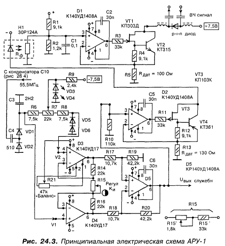электронных цепей ПЕРВОЙ ПЕТЛИ АВТОМАТИЧЕСКОЙ РЕГУЛИРОВКИ УСИЛЕНИЯ, иначе - АРУ1.