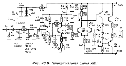 и VT2, а также микросхемах D7, D8 и D9. На транзисторе VT1 собран входной