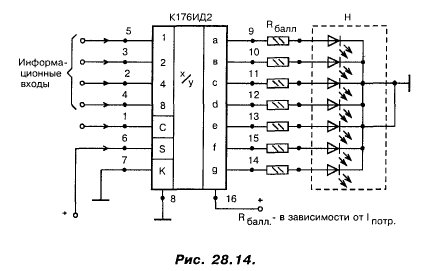 кодов, которыми и являются микросхемы К176ИД2, должны быть включены так, как