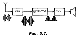 Прежде всего, Незнайкин! Для чего оно необходимо? Почему нельзя (см. рис. 5.4, иллюстрирующий AM) просто подать сигнал вида “в” на головные телефоны или динамик?