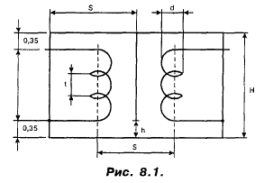 8 — толщина стенки каркаса, на который намотана спираль, см. рис. 8.1;