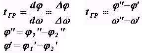Групповое время запаздывания – время распространения максимума энергии сигнала, состоящего из группы близких по частоте гармонических составляющих.