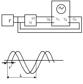 Если в ЭО установить режим внешней развертки и подать на входы X и Y сигнолы, между которыми необходимо измерить фазовый сдвиг, то на экране осциллографа можно получить фигуру Лиссажу (см. рисунок):
