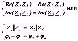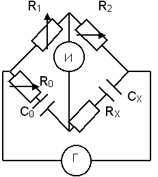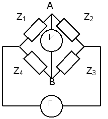 В одну из диагоналей моста включают генератор Г, а в другую – индикатор И. Изменяя сопротивление плеч моста, можно добиться такого состояния схемы, когда индикатор покажет отсутствия тока в диагонали АВ моста. Мост в таком состоянии называют уравновешенным. Аналитически условие равновесия моста можно записать