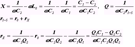 безымянные четыре емкости – емкостные делители напряжения, ослабляющие степень влияния генератора и вольтметров на измерительный контур.