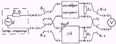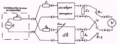 ВНИМАНИЕ! При измерении этим методом необходимо, чтобы Zr = Rо, где Ro - характеристическое сопротивление магазина ослаблений, т.е. характеристическое сопротивление магазина ослабления должно быть равно требуемому значению нагрузки четырехполюсника со стороны входных зажимов. Если это условие выполнить невозможно, измерять этим методом нельзя!