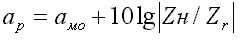 Так как при согласованном включении рабочее ослабление равно собственному, то при таких нагрузках ( Zr =Z