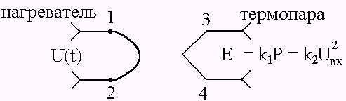 Исследуемый сигнал поступает на нагреватель (1-2), тот нагревает термопару (3-4), которая вырабатывает термо-эдс Ет (её размер пропорционален мощности Р, выделяемой на нагревателе, которая пропорциональна квадрату входного напряжения), поэтому прибор реагирует на среднеквадратическое значение напряжения сигнала.