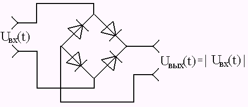 Мост выполняет функцию взятия по модулю. Прибор с таким преобразователем измеряет средневыпрямленное значение напряжения (если сигнал достаточно большой). При малом сигнале – диод не работает как ключ и процедура взятия модуля сигнала осуществляется с большими искажениями.