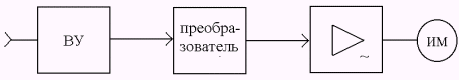 ВУ – входное устройство, которое обеспечивает необходимое значение входных параметров вольтметра, калиброванное ослабление входных сигналов с целью расширения диапазонов измерения, согласование ослабителя сигналов с усилителем.